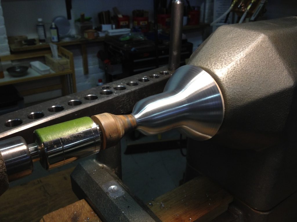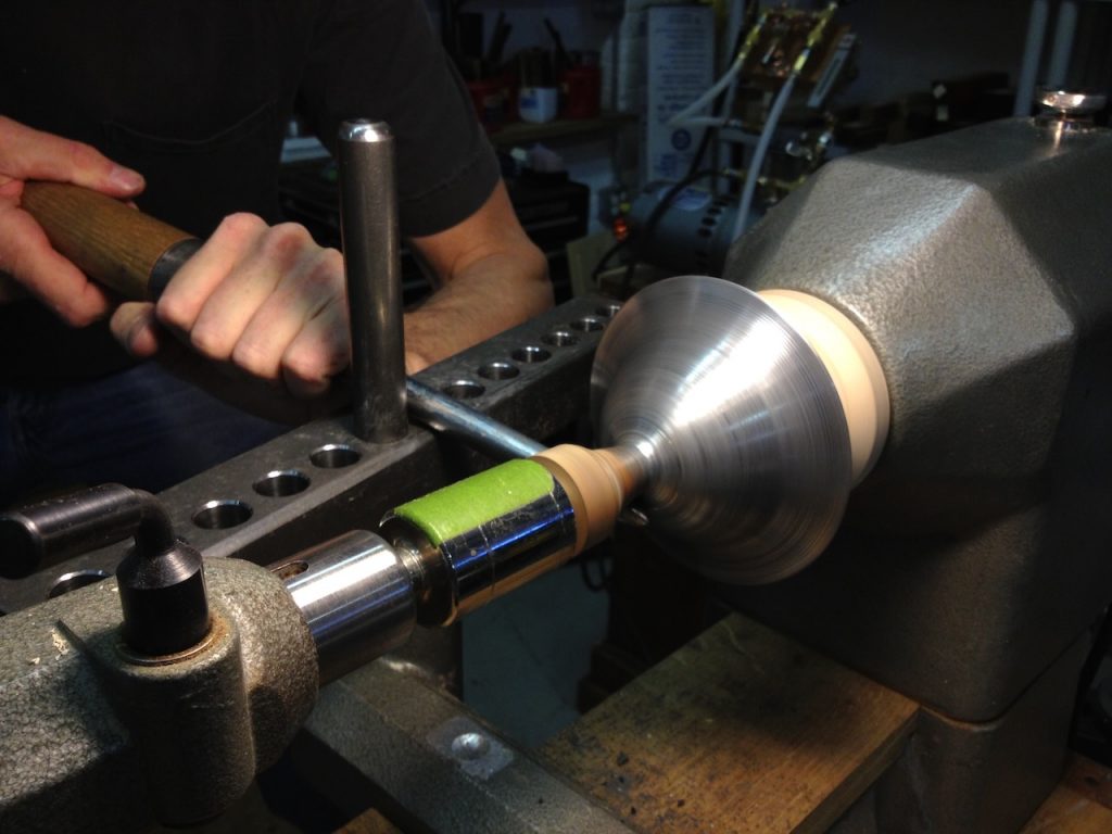 The most common spinning technique starts with making a mandrel to push the metal against.
