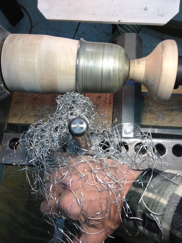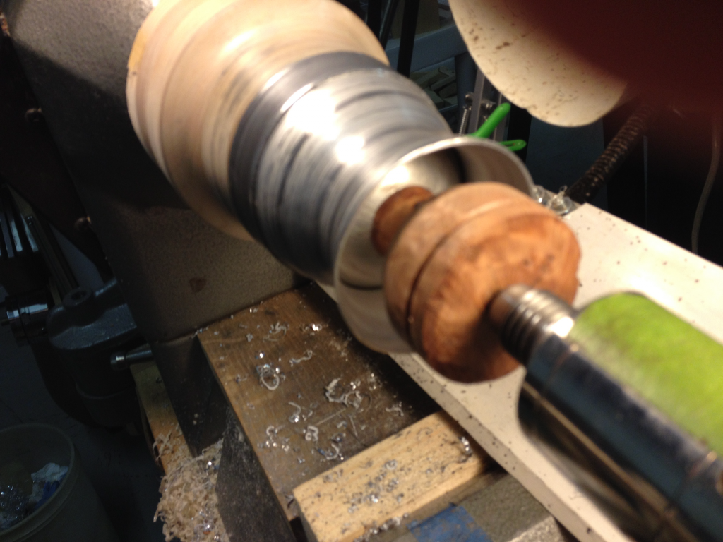 I first made a cup on the mandrel and then made another cup over the top of it and cut its bottom off to make a sleeve.